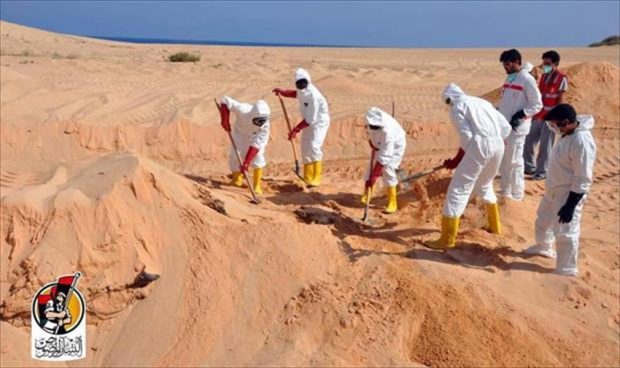 انتشل الهلال الأحمر فرع مصراته، الجمعة، عشر جثت لعناصر من “تنظيم الدولة” قرب ميناء سرت البحري.