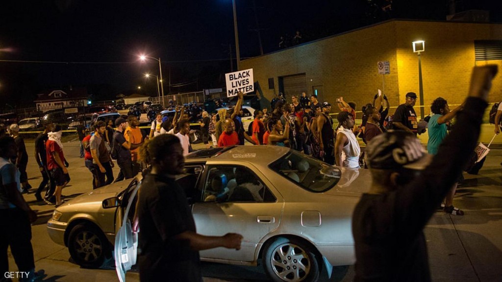 ودخل حوالي 20 ضابطا من الشرطة في مواجهات بالمدينة مع قرابة 150 شخصا غاضبا، قاموا بمحاصرة تقاطع الطرق الذي لقي به الرجل الأسود مصرعه.
