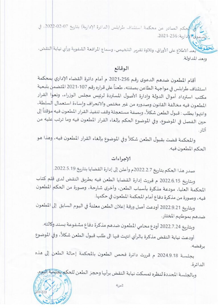 في خطوة هامة تدعم جهود استعادة الأموال الليبية المنهوبة، أصدرت المحكمة العليا الليبية حكماً نهائياً لصالح الدولة الليبية، رافضةً طعنًا مقدمًا في القضية الإدارية رقم 223/69 ق.