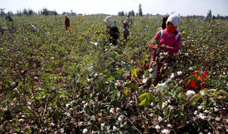 عاملات قطن بأحد الحقول في محافظة الشرقية شمال شرقي القاهرة (رويترز)