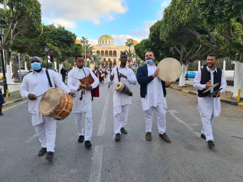 ووسط حشود شعبية كبيرة جرى استعراض شاركت فيه كراديس من وزارة الداخلية والهلال الأحمر والكشافة والمرشدات وفرق الفنون الشعبية والنحاسية وحملة الريات والفرسان الشعبيين من مختلف أندية الفروسية الذي يحملون اللافتات المعبرة عن الفرح والابتهاج والدعوة للوحدة الوطنية والمصالحة والتوجه لبناء الدولة، فيما كانت السفن الراسية بمينائي طرابلس والشعاب تطلق صافراتها تعبيرا عن الفرح والابتهاج بهذه الذكرى الوطنية، وسط إطلاق الألعاب النارية التي زينت سماء الميدان، بحسب ما أفادت وكالة الأنباء الليبية.