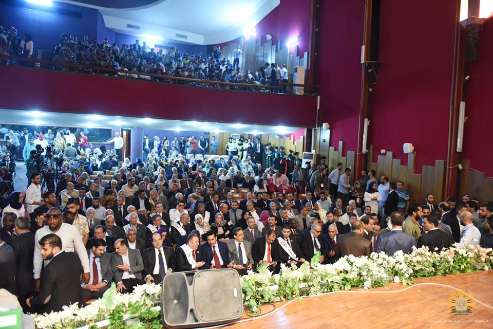 انطلقت صباح امس بمدرج كلية العلوم جامعة طرابلس، الاحتفالات الرسمية للذكرى الستين لتأسيسها، وذلك بحضور الاستاذ الدكتور “نبيل النطاح” رئيس جامعة طرابلس، والدكتور “عثمان عبد الجليل” وزير التعليم بحكومة الوفاق والنائبان بالمجلس الرئاسي “احمد معيتيق” و”عبدالسلام كاجمان”، والسادة أعضاء مجلس النواب الليبي والسادة أعضاء مجلس الأعلى للدولة والسيد وكيل وزارة التعليم “عادل جمعة” والسادة السفراء واعضاء السلك الدبلوماسي و رؤساء من الكليات والجامعات الليبية ورئيس اتحاد الطلبة بالجامعة، وبعض من عمداء البلديات ومدراء الادارات والهيئات والمراكز بالدولة الليبية، بالاضافة إلى رؤساء الجامعة السابقين وعمداء الكليات ووكلاء الجامعة السابقين والحاليين ومدراء الادارات ورؤساء الاقسام واعضاء هيئة التدريس والاتحاد العام للطلبة وطلبة الكليات والعديد من الشخصيات والضيوف الذين شاركو الجامعة احتفالتها بالعيد الستين.