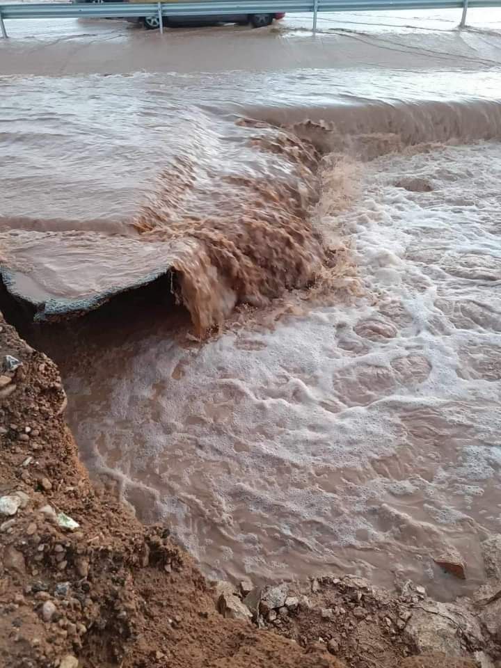 ودعا قسم المرور بمديرية أمن أم الرزم في منشور على صفحته على فيسبوك المواطنين وسائقي المركبات “لعدم الخروج من منازلهم أو السفر عبر هذين الطريقين إلا في حالات الضرورة القصوى حفاظا علي سلامتهم لأنهما مقطوعتان تماما من قبل السيول”.