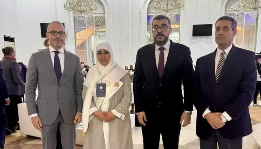 وأضاف في حسابه على منصة “اكس”: “كان من دواعي سروري بشكل خاص أن ألتقي وأهنئ الزائرة المقطوف، أول عميدة بلدية في ليبيا، من بلدية زلطن، وهو إنجاز تاريخي وواعد للبلاد”.