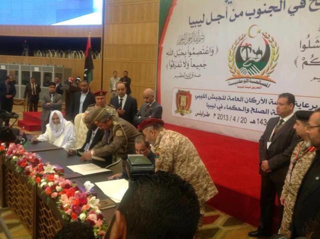 وقعت قبيلتا اولاد سليمان والتبو اليوم السبت على ميثاق للصلح بين القبيلتين وذلك في ختام مؤتمر “الصلح خير الذي عقد في طرابلس برعاية رئاسة الأركان العامة، ولجنة الصلح والحكماء في ليبيا تحت شعار : “نتصالح في الجنوب من أجل ليبيا”.