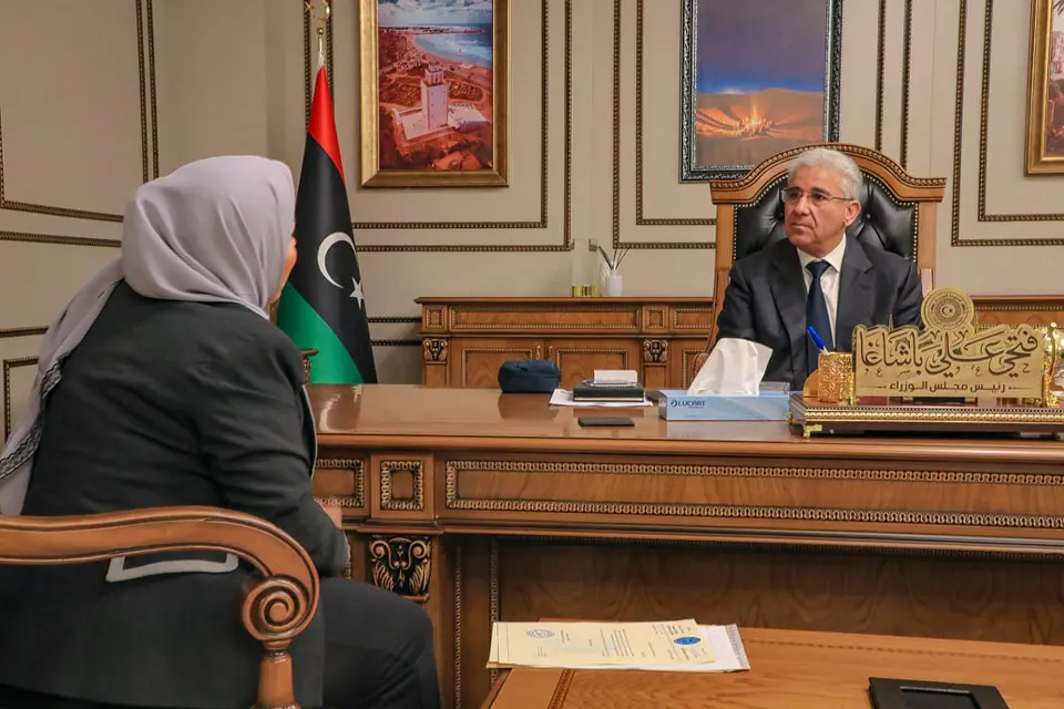 عقد رئيس الحكومة الليبية المُكلف من مجلس النواب فتحي باشاغا، اليوم الأحد، في مقر رئاسة الوزراء بمدينة سرت، اجتماعاً مع وزير الدولة لشؤون المرأة انتصار عبود.