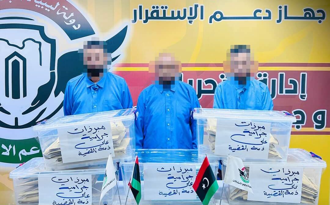 ويتكون التشكيل من شخص ليبي الجنسية (37 عاما) وشخصين جزائريين (46 عاما و31 عاما) وسيدتين ليبيتين (43 عاما و33 عاماً).