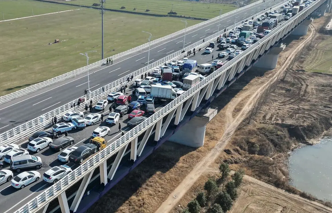 في السياق، وفي حادث جديد ناجم عن الظروف الجوية القاسية في البلاد، فإن أكثر من 100 سيارة اصطدمت ببعضها البعض بعد تجمد جزء من طريق سريع في مدينة سوتشو الصينية، ما تسبب بإصابة عدد من الأشخاص.