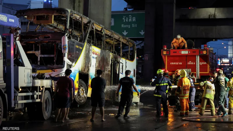 تحوّلت رحلة مدرسية في تايلاند إلى مأساة، حيث قتل 23 شخصا على الأقل إثر اندلاع حريق في حافلة مدرسية أثناء قيامهم برحلة ميدانية.
