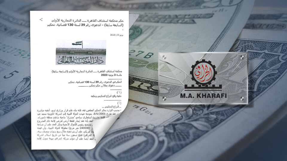 وفي خطاب وجهه رئيس الديوان خالد شكشك إلى رئيس إدارة القضايا ورئيس لجنة المنازعات المنظورة بالخارج، أكد ديوان المحاسبة أن الحكم القضائي الصادر من محكمة استئناف القاهرة، قضى بإبطال الحكم التحكيمي الصادر ضد ليبيا بإلزامها بدفع مبلغ مليار دولار لشركة الخرافي الكويتية بالإضافة إلى الفوائد المتراكمة والمصاريف القضائية.