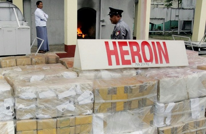 أعلنت الشرطة البورمية الأحد، عن ضبط كميات من الهيروين والميتافيتامين بقيمة 30 مليون دولار في البلاد التي لا تزال تعتبر منتجا مهما للمخدرات. وتقع بورما في قلب المثلث الذهبي الذي يشمل أيضا جزءا من لاوس وتايلاند.