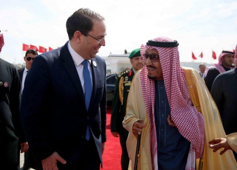 حيث أقلعت طائرة العاهل السعودي قبل دقائق من انتهاء الجلسة الافتتاحية، وكان في وداعه بالجناح الرئاسي لمطار تونس قرطاج الدولي رئيس الحكومة التونسية، يوسف الشاهد.