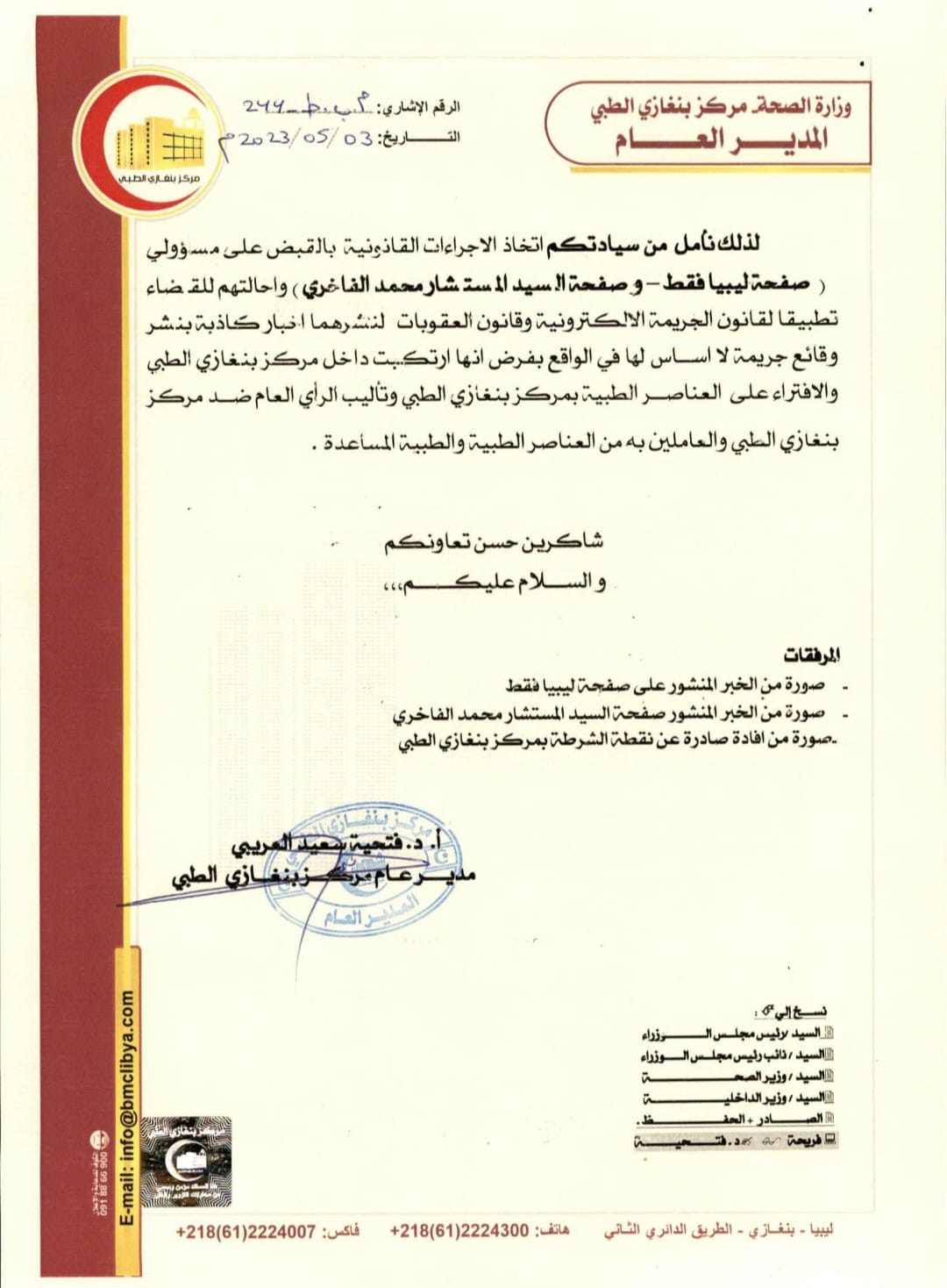 نفى مركز بنغازي الطبي الأخبار المتداولة عبر مواقع التواصل الأجتماعي حول وجود معاونة صحية تقوم بإستبدال الأطفال بقسم الولادة.