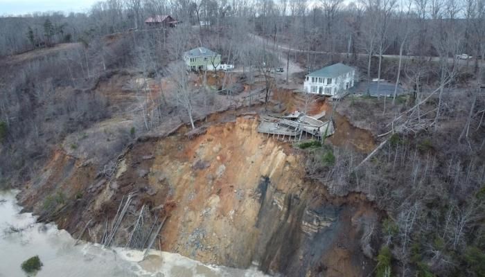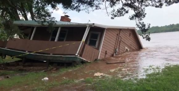 وثق مقطع فيديو سقوط منزل ضخم في مجرى نهر تينيسي بالولايات المتحدة.