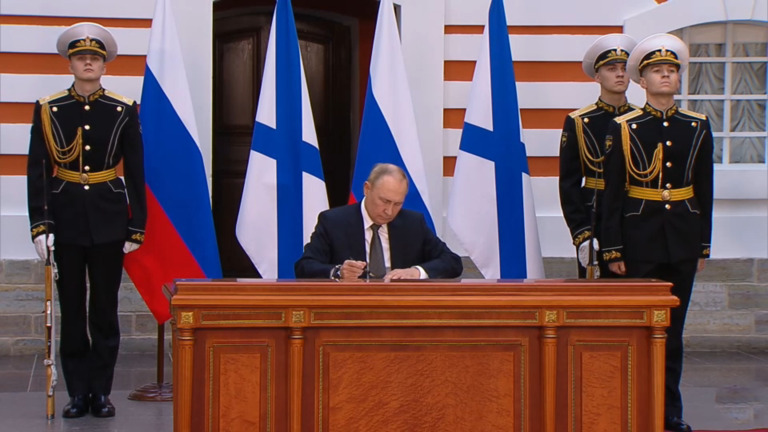 وقع الرئيس الروسي فلاديمير بوتين، اليوم الأحد، على مرسومين لإقرار العقيدة الجديدة للبحرية الروسية وميثاق الأسطول العسكري الروسي.