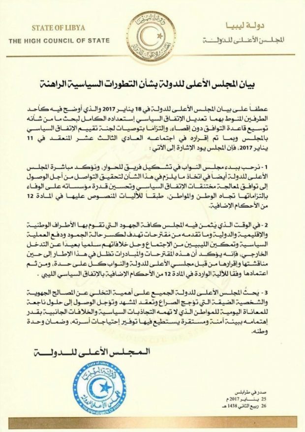 عين ليبيا وصل عين ليبيا هَذا البيان الصادر عن المجلس الأعلى للدولة بشأن التطورات السياسية الراهنة. اقترح تصحيحاً