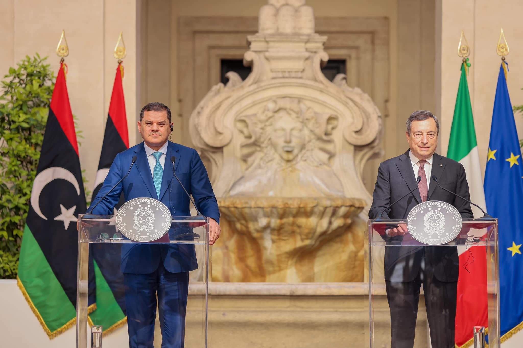 كما تقدم الدبيبة بالشكر لإيطاليا والاتحاد الأوروبي على مجهوداتهم لدعم ليبيا في مواجهة الهجرة غير الشرعية ومساندة التعاون الصحي.