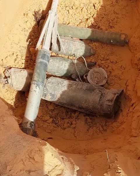 فكك مكتب التفتيش الأمني وتفكيك المتفجرات، في جهاز المباحث الجنائية ، عبوات ناسفة مبتكره (غير آمنة)، بمزرعة مواطن بمنطقة خلة الفرجان -طرابلس.