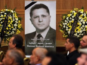 اقام الليبيون فى الايام القليلة الماضية حفل تآبين لروح شهيد الوطن …الشهيد (منصور الكيخيا) الدى كان صوت حق ازعج الطاغبة و قض مضجعه و طير النوم من عينه.