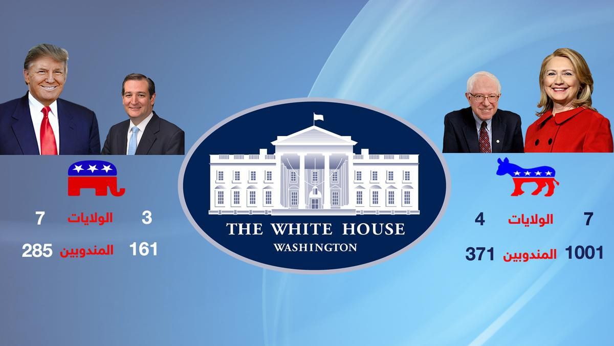 وفي المعسكر الديمقراطي فازت هيلاري كلينتون في 7 ولايات، بينما فاز بيرني ساندرز في 4 ولايات، هي كولورادو ومينيسوتا وأوكلاهوما وولايته فيرمونت.