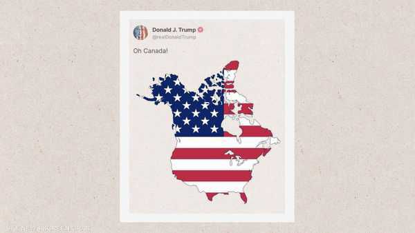 وفي منشور على منصة “تروث سوشيال” علق ترامب على إحدى الصور التي تظهر الخريطة الموحدة لأميركا وجارتها الشمالية معا تحت العلم الأميركي قائلا: “أوه كندا”.