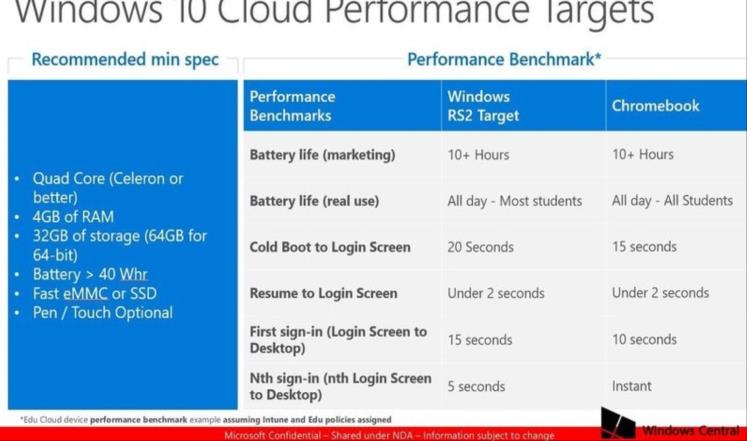 تسريبات تقارن أداء ويندوز 10 كلاود بحواسيب كروم