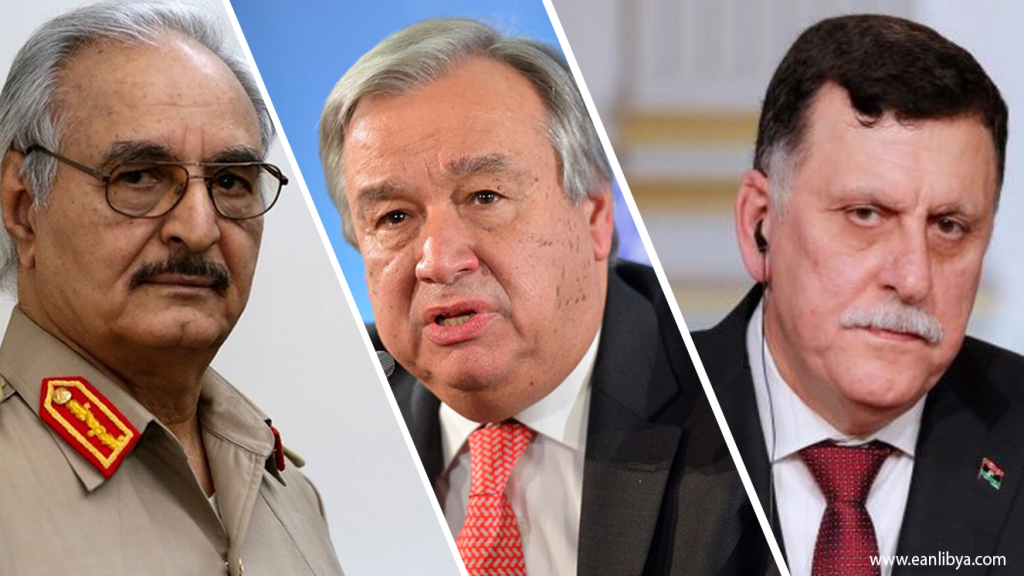 رفض قائد قوات الكرامة خليفة حفتر المقترح الذي قدمه له الأمين العام للأمم المتحدة أنطونيو غوتيريش، حول لقاء يجمعه مع رئيس المجلس الرئاسي فائز السراج في جنيف في محاولة لاحتواء الأزمة والتطورات الأخيرة.
