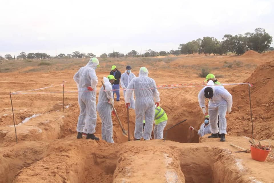يأتي ذلك في حين، أفاد رئيس الهيئة العامة للبحث والتعرف على المفقودين كمال أبوبكر السيوي، باستخراج 115 جثة من 25 موقعا داخل مشروع الربط بترهونة، وجمع بيانات من 330 عائلة من ذوي المفقودين.