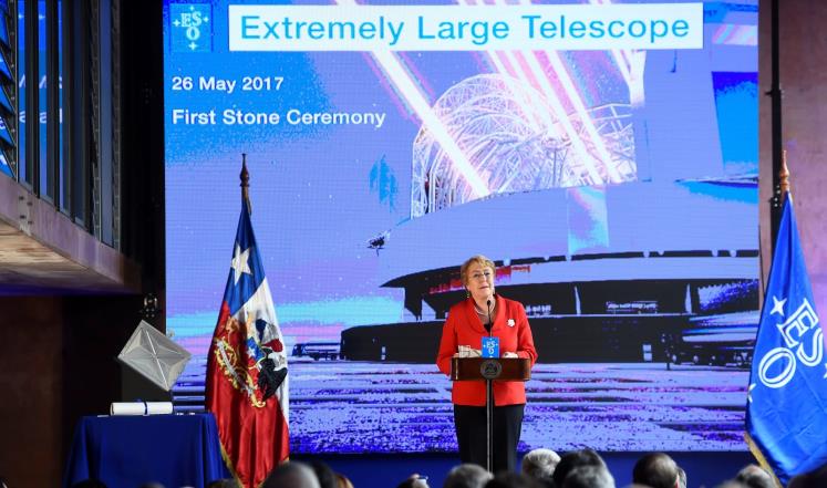 وقالت رئيسة تشيلي ميشيل باشيليت أمس الجمعة في مراسم وضع حجر الأساس إن “أكثر من تلسكوب يجري بناؤه هنا (في تشيلي)” مشيرة إلى الإمكانات الكبيرة للتعاون الدولي في مجال العلم والتكنولوجيا.