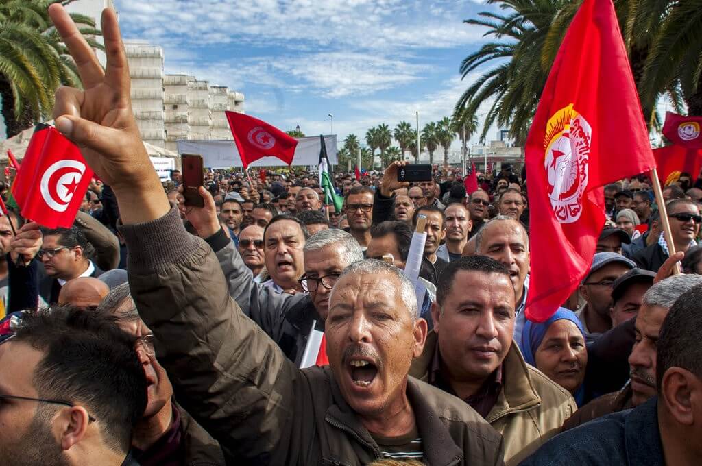 في سياق متصل رفع المتظاهرون شعارات مساندة للقضية الفلسطينية من قبيل لا صفقات تطبيعية على الأراضي التونسية وتحرير فلسطين واجب الأمة وفلسطين عربية لا حلول استسلامية.