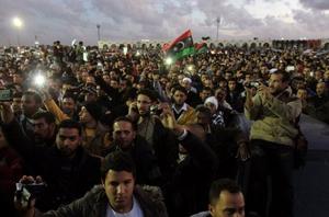 وبعد صلاة الجمعة، توجه مئات المتظاهرين الى ساحة تيبستي في بنغازي مهد الثورة على العقيد القذافي في 2011.
