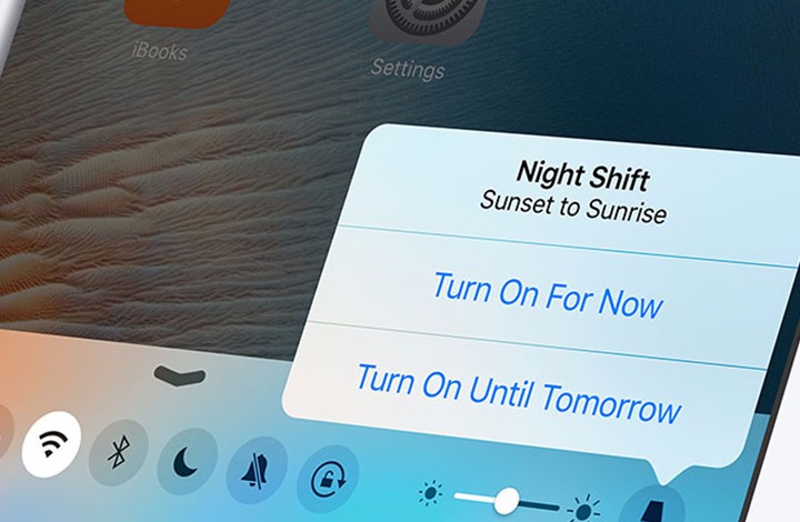 إلا أن آيفون في الإصدار الجديد وضعت هذه الميزة بشكل افتراضي، في تحديثها الجديد، وأطلقت عليها اسم Night Shift حيث يقوم النظام بتخفيف الضوء الأزرق تدريجيا، وفقا لمواعيد غروب الشمس بحسب المكان الجغرافي للمُستخدم.