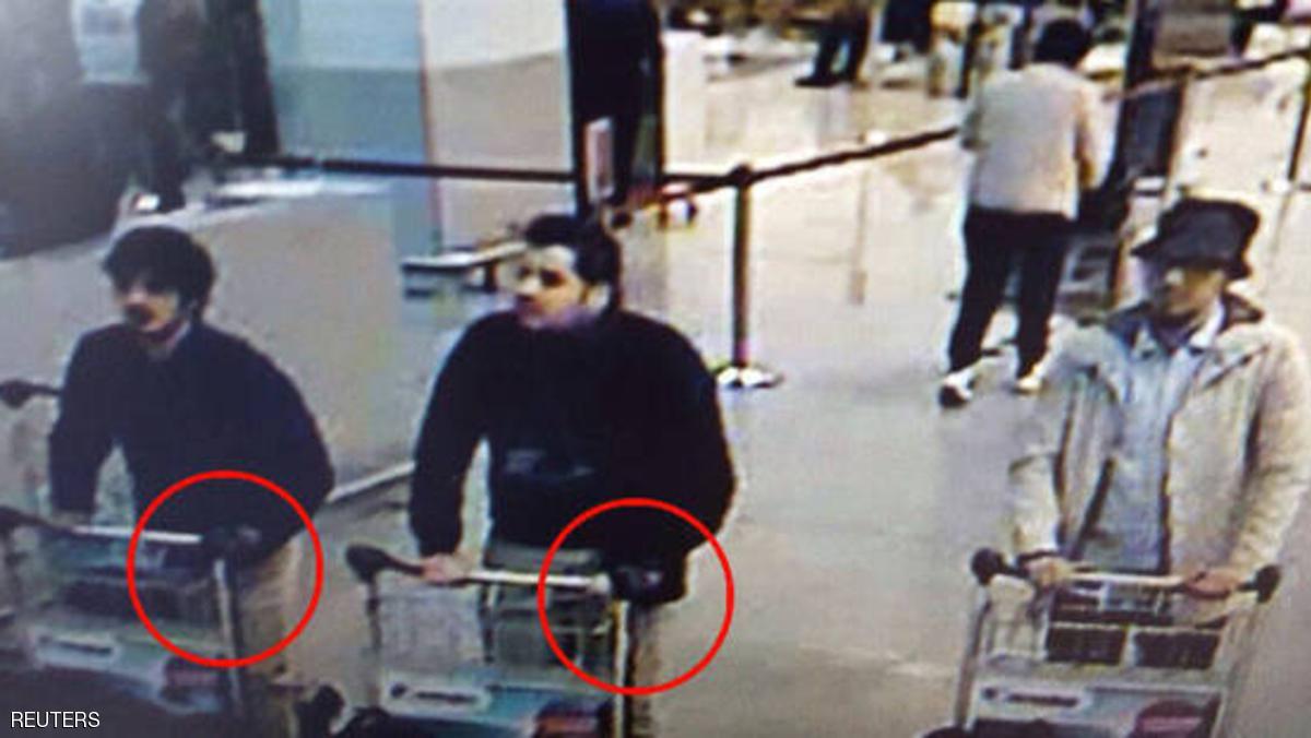 الشقيقان البكراوي (بالقميص الأسود) مع شخص ثالث يرتدي قبعة ، أقر عبيني بأنه هو، وذلك قبل تنفيذهم تفجير مطار بروكسل