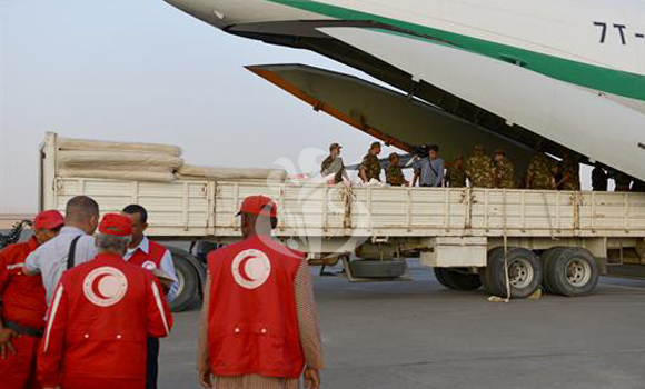 الدولة الجزائرية قررت إرسال إعانات إنسانية عاجلة تحملها 6 طائرات عسكرية من الحجم الكبير إلى الأشقاء الليبيين من سكان غات الذين هم بحاجة إلى هذه المساعدات جراء الفيضانات التي اجتاحت مؤخرا كل منطقة ازجار.