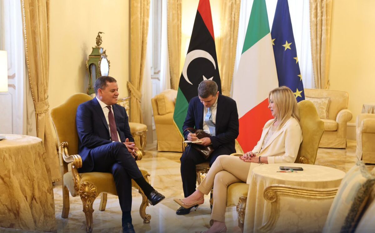 عقد الوفد الليبي برئاسة رئيس حكومة الوحدة الوطنية عبد الحميد الدبيبة، اجتماعاً تقابليا، اليوم الأربعاء، في العاصمة الإيطالية روما، مع الحكومة الإيطالية برئاسة رئيسة الوزراء جورجيا ميلوني.