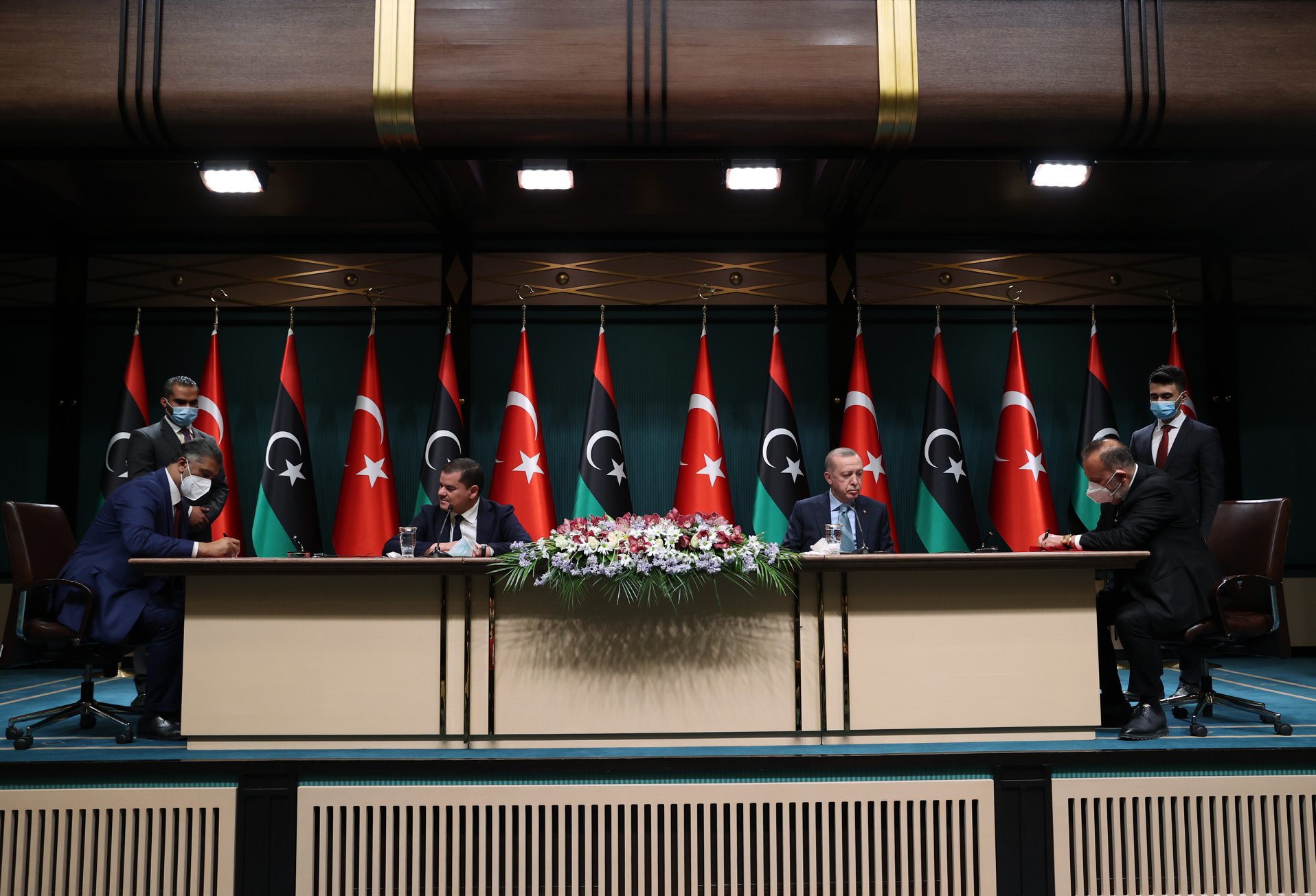 أبرمت تركيا وليبيا، اليوم الاثنين، 5 اتفاقيات في مجالات مختلفة، في مراسم حضرها الرئيس التركي رجب طيب أردوغان، ورئيس حكومة الوحدة الوطنية عبد الحميد الدبيبة.