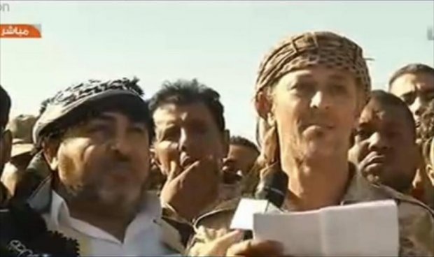 قيادات لواء القعقاع وكتيبة الصواعق أثناء إلقاء بيان إمهال أعضاء "المؤتمر" خمس ساعات للاستقالة