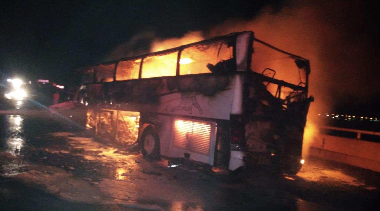 ووقع الحادث بين مركبة وحافلة تقل معتمرين من جنسيات مختلفة، واشتعلت في حافلة المعتمرين، مما أسفر عن وفاة 35 شخصاً وإصابة 4 آخرين تم نقلهم إلى مستشفى الحمنة ووادي الفرع.