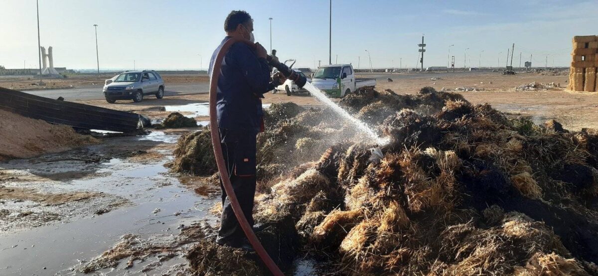 وذكر المكتب الإعلامي للقسم، أن مسوؤل غرفة العمليات بالقسم تلقى إخطارًا بتصاعد أدخنة كثيفة وارتفاع ألسنة اللهب من إحدى مخازن أعلاف المواشي الواقع غرب أجدابيا، حيث جرى الدفع بسيارتي إطفاء إلى المكان المُبلغ عنه.