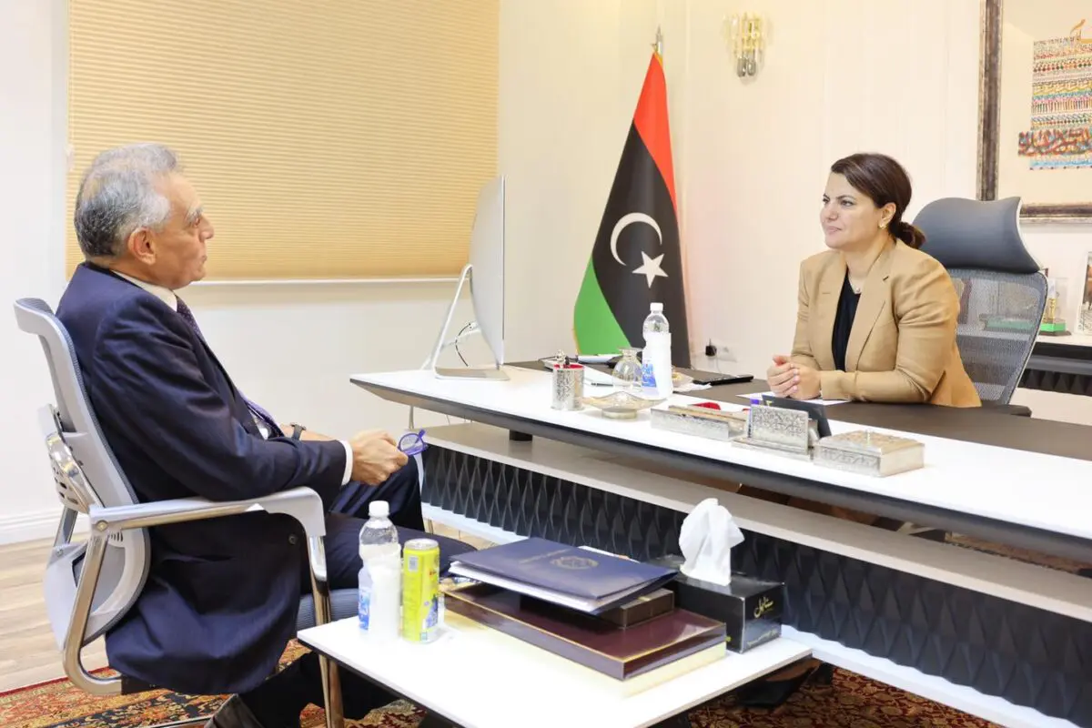 وأفاد المكتب الإعلامي بالوزارة، بأن اللقاء يأتي لمناقشة آخر التطورات السياسية على الساحة الليبية، وجهود الوزارة وحكومة الوحدة الوطنية من أجل تعزيز الاستقرار والسلام بالبلاد.