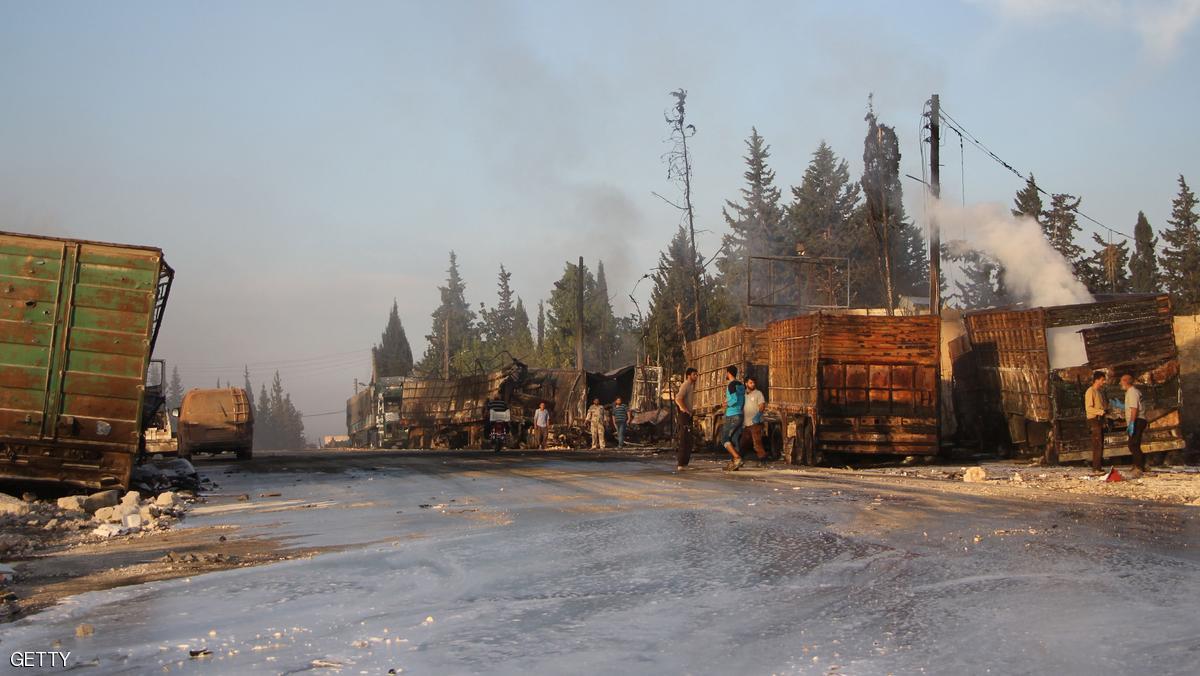 ونفت روسيا وسوريا مسؤولية طائراتها الحربية عن القصف، وقالت موسكو إنها تعتقد أن القافلة لم تتعرض نهائيا لنيران من الجو، لكنها دمرت نتيجة حريق.