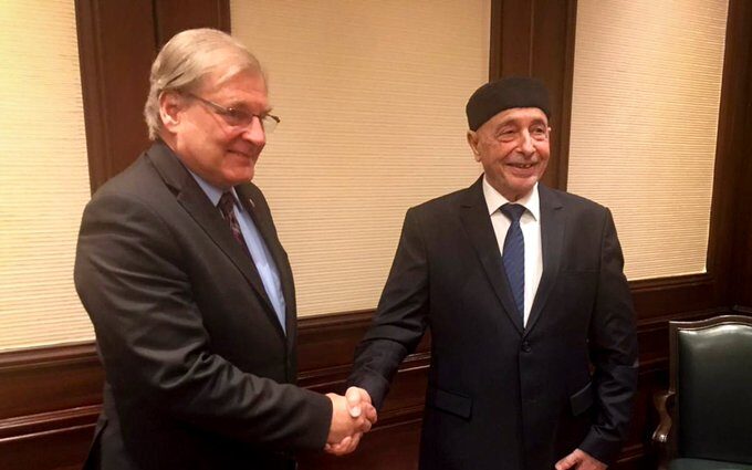 بحث سفير الولايات المتحدة ومبعوثها الخاص إلى ليبيا ريتشارد نورلاند مع رئيس مجلس النواب عقيلة صالح آخر التطورات المتعلقة بالانتقال السياسي في ليبيا، تزامنا مع استعداد مجلس النواب لمناقشة ميزانية وطنية جديدة.