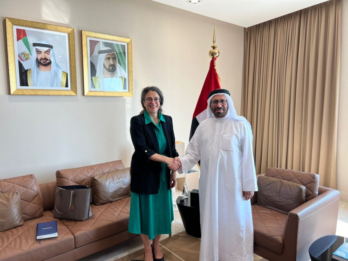 اجتمعت نائبة الممثل الخاص للأمين العام للشؤون السياسية القائمة بأعمال رئيس بعثة الأمم المتحدة للدعم في ليبيا ستيفاني خوري، اليوم في أبو ظبي، بوزير الدولة الإماراتي، خليفة بن شاهين المرر.