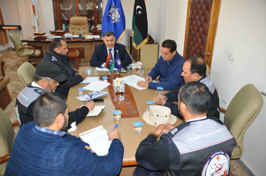 عقد وكيل وزارة الداخلية بحكومة عميد خالد مازن، اجتماعاً الاثنين، مع رئيس هيئة السلامة الوطنية المكلف عميد إمحمد علي، وبحضور مدير إدارة المفرقعات ومعالجة المتفجرات، وعدد من الضباط الفنين بالهيئة، ورئيس قسم متابعة وتقييم الأداء بمكتب الوكيل.