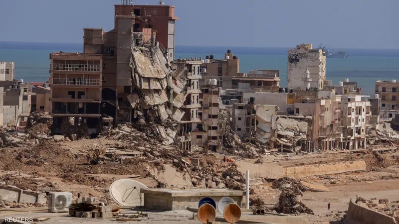 وسط درنة على ضفتي الوادي مجرد أطلال من مباني مهدمة وطمي ومخلفات متراكمة ويحتاج إلى شهور للتعافي.