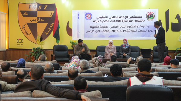 أقامت الجمعية الليبية لمتلازمة داون بمدينة درنة ندوة علمية حول الجوانب الطبية والتربوية والصحية لمتلازمة داون وطريقة التدخل المبكر لعلاج الأطفال المصابين.
