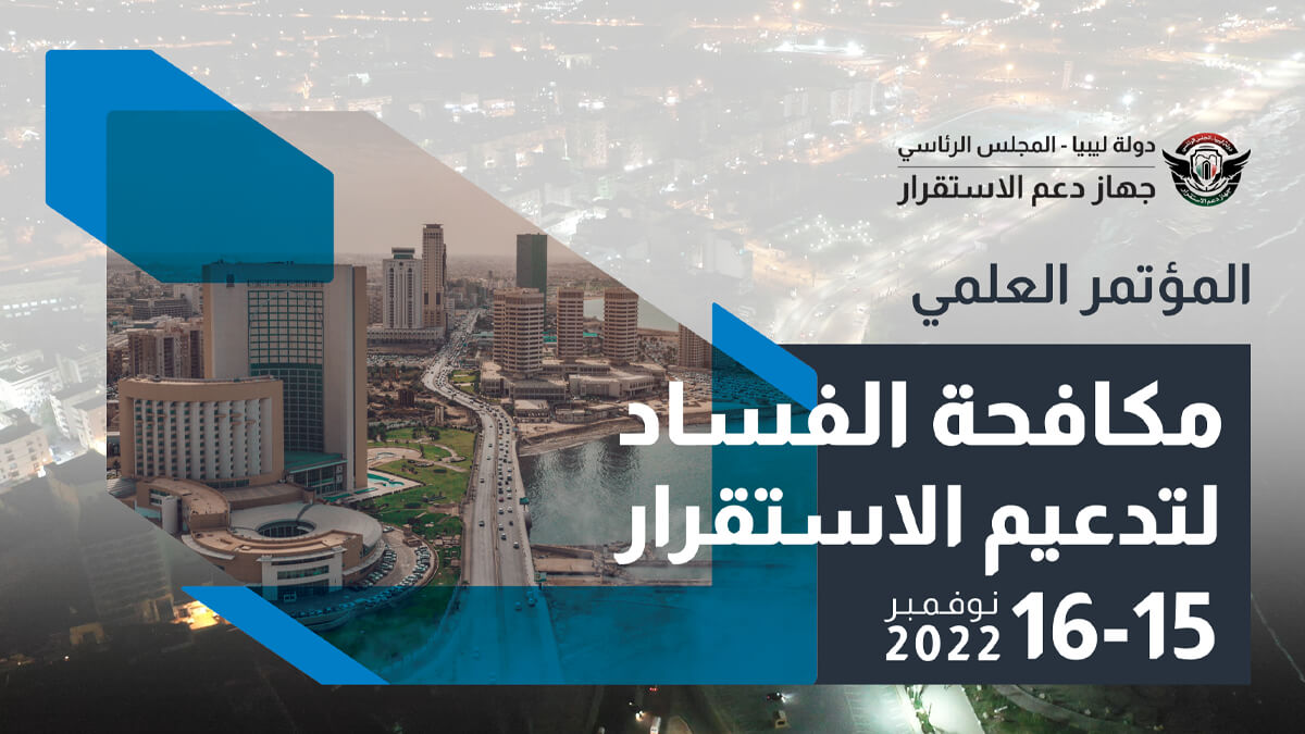 يُنظم جهاز دعم الاستقرار بالتعاون مع المركز العربي الأوروبي لحقوق الإنسان والقانون الدولي والمنتدى الثقافي العربي البريطاني، خلال الفترة 15-16 نوفمبر الجاري، بفندق كورنثيا في العاصمة طرابلس، مؤتمراً علمياً حول مكافحة الفساد بمشاركة محلية ودولية واسعة.
