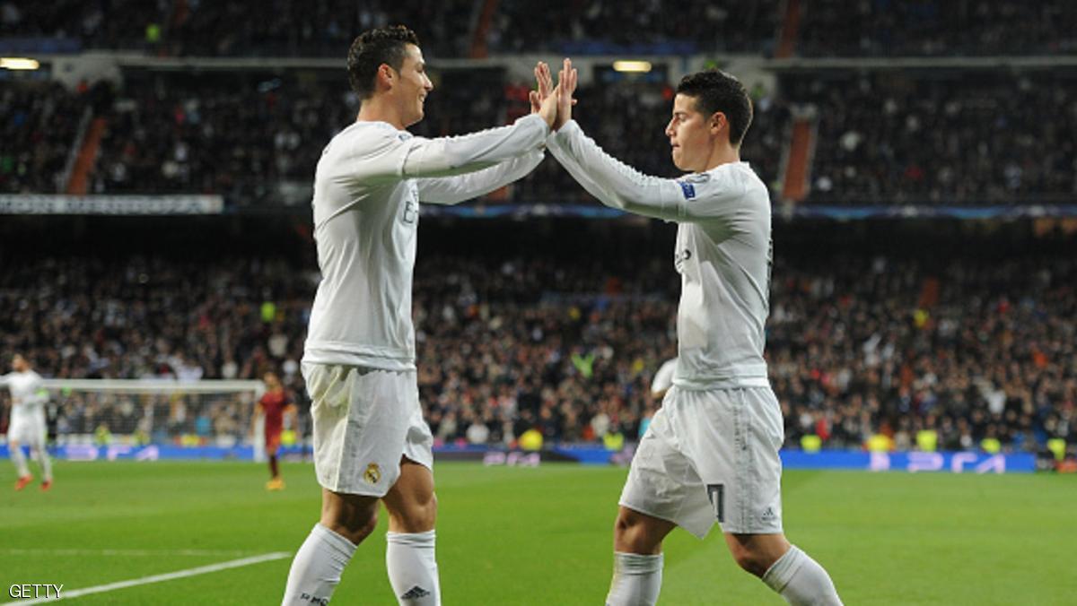 سجل كريستيانو رونالدو وجيمس رودريغيز هدفين في غضون خمس دقائق، ليكرر ريال مدريد فوزه 2-صفر على روما، ويتأهل إلى دور الثمانية بدوري أبطال أوروبا لكرة القدم، الثلاثاء.