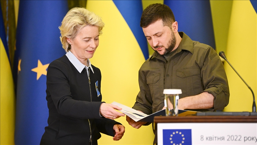 وقالت دير لاين موجهة كلامها لزيلينسكي «رسالتي اليوم واضحة، أوكرانيا تنتمي إلى الأسرة الأوروبية، سمعنا طلبكم بصوت عال وواضح، ونحن هنا اليوم لنقدم لك أول رد إيجابي».