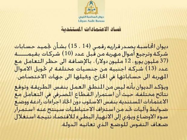 وأكد الديوان عزمه الاستمرار في التصدي لمن أسماهن بـ”ضعاف النفوس” واتخاذ المزيد من الإجراءات الرادعة للحد من استنزاف الاقتصاد الليبي والحيلولة دون إضعافه.